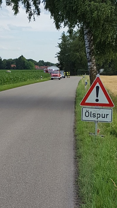 Ein PKW erlitt einen Achsbruch, aufgrund dessen trat Öl aus und verschmutzte im Kurven bereich der Torfstraße die Fahrbahn. Die Einsatzkräfte der Feuerwehr Eicherloh sicherten die Einsatzstelle gegen den fließenden Verkehr ab, und reinigten die Öl verschmutzte Fahrbahn.