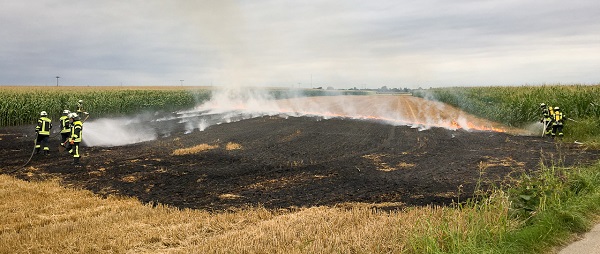 Brand Acker Groß Der zweite Alarm für die Feuerwehr Eicherloh erreichte uns noch auf der Rückfahrt von einem First Responder Einsatz. In Eichenried geriet aus unbekannter Ursache ein Acker in Brand. Zusammen mit der Feuerwehr Eichenried löschten wir mit zwei C- Rohren das Feuer ab und verhinderten so ein übergreifen auf benachbarte Felder. Ein passant wurde durch das Feuer leicht verletzt und von uns bis zum eintreffen des Rettungsdienstes erstversorgt.