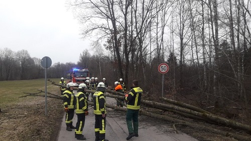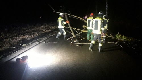Heftige Sturmböen ließen wieder einige Bäume umstürzen, wir beseitigten die Bäume von den Fahrbahnen und reinigten die Straßen.