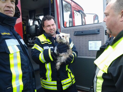 Tierrettung im Vorderen Finsingermoos Beim o.g. Einsatz wurden wir von der ILS Erding alarmiert um einen Hund zu retten. Radlfahrer hatten den winselnden, verängstigten und durchgefrorenen Chiwawa am Ufer des Finsinger Moosgrabens, an der Landshamer Straße, bemerkt. Der Chiwawa von uns liebevoll "Max" genannt wurde von seinem Graspodest am Bachlauf geholt. Im Feuerwehrhaus wurden ihm die Pfoten gewaschen, dann wurde er abgetrocknet und in eine Decke gepackt. Weil "Max" keine Marke hatte blieb uns nichts anderes übrig als ihn nach Absprache mit Polizei und der Leitstelle ins Tierheim nach Kirchasch zu bringen.